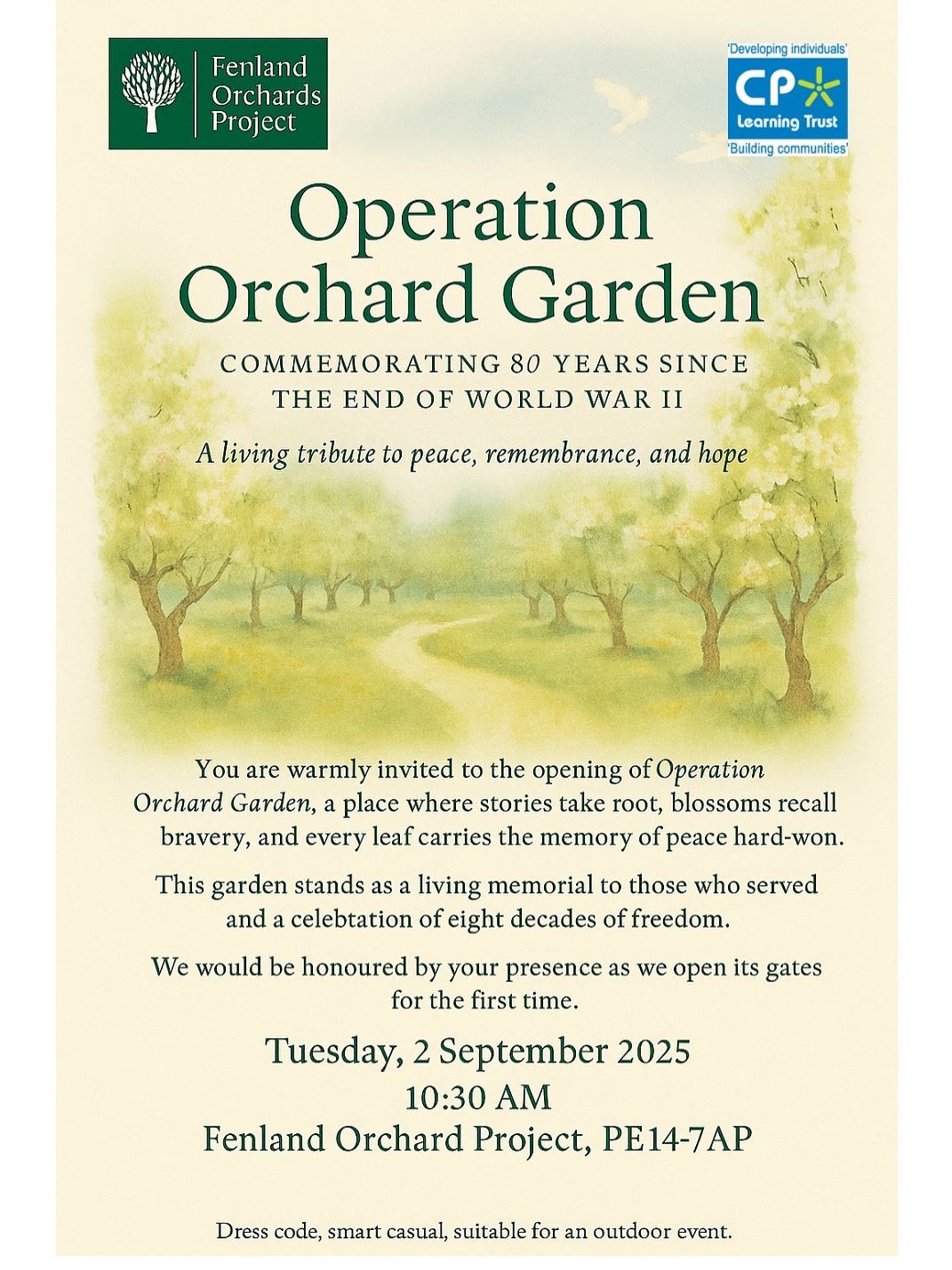We are pleased to announce the opening of the Operation Orchard Garden on Tuesday 2nd September 2025.