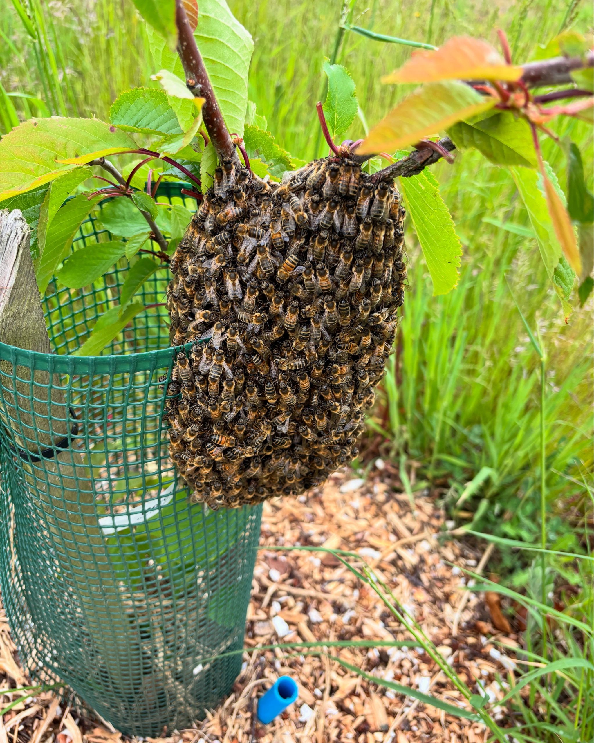 Please be aware that a swarm of bees have taken up temporary residence at the orchard. We are in contact with a bee keeper as how to deal with them. They may have just stopped for a rest but we will keep you updated on what happens next.