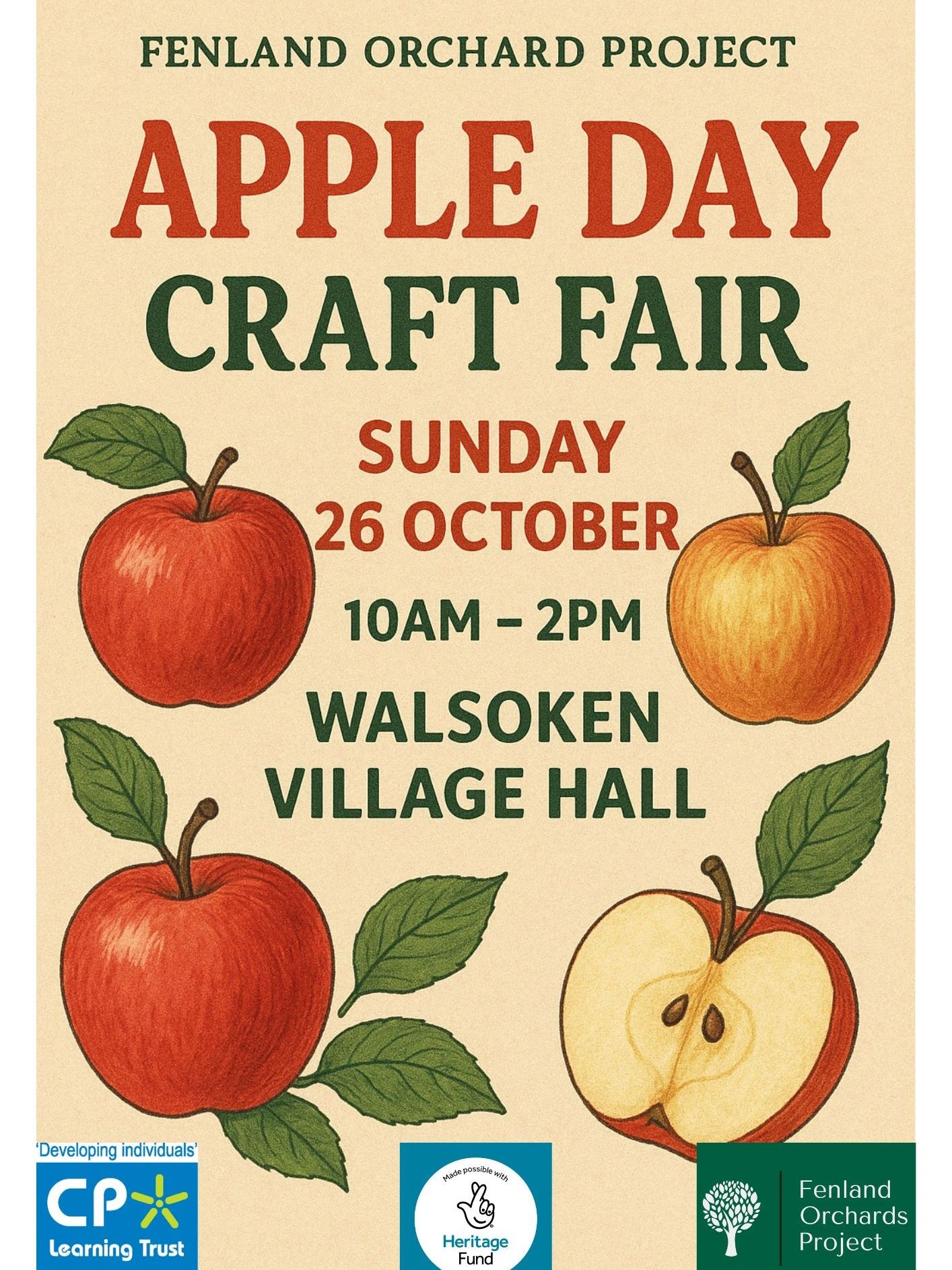 We are pleased to announce the Apple Day Craft Fair will be at the Walsoken Village Hall on Sunday 26th October. 10am - 2pm. We have some wonderful crafters and local producers planned, along with a street food vendor